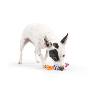 Take playtime to new heights with the Tiny Tuff Rocket Man! This adorable dog toy is ready for liftoff with its rocket shape and durable construction. Your pup will have a blast chasing and playing with this fun toy. Woof!